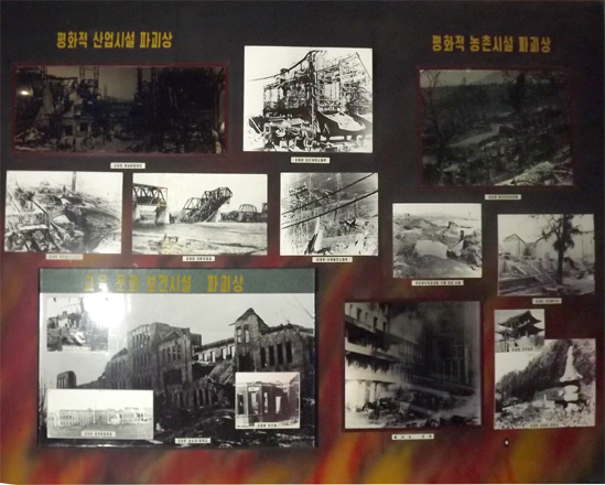 Durch das brutale Bombardement der US-Imperialisten wurden die Städte, Dörfer, Kultureinrichtungen, historischen Bauwerke und sogar die entlegenen Wohnhäuser in den tiefen Tälern und Krankenhäuser in Korea zerstört.