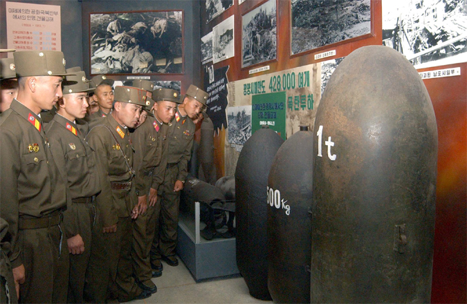 Im Notizbuch eines US-Soldaten, der im Korea-Krieg fiel, standen die Worte „Ohne Töten kann ich nicht einschlafen“, was großen Zorn der Besucher erregte. Bei der Besichtigung der Ausstellung begriffen die Besucher noch deutlicher, dass die US-Aggressoren die brutalsten und grausamsten Wölfe in der Welt sind. Als die Besucher die Fotos von den Leichen zahlreicher Patrioten und unschuldiger Zivilisten sahen, die von den Amerikanern und Klassenfeinden getötet wurden, empfanden sie ein starkes Rachegefühl. Die Führerin fuhr fort: „Das ist nur ein Teil der Missetaten der Amerikaner. Die amerikanischen Flugzeuge ermordeten durch rücksichtsloses Bombardement und Maschinengewehrschüsse auf die Wohnviertel, wo es keine Militäranlagen gab, zahllose unschuldige Zivilisten.