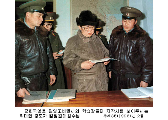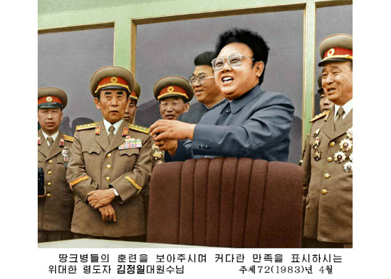 Er stellte sich zeitlebens im Vorposten für Verteidigung des Vaterlandes, brachte die koreanische Sache für den Aufbau der Armee unaufhörlich auf eine höhere Etappe, wodurch er die KVA zur vorzüglichsten Elite-Kampfformation festigte und weiterentwickelte. Er wirkte darauf hin, in der ganzen Armee die Flamme der Bewegung um den Titel „7. Regiment unter O Jung Hup“ heftig auflodern zu lassen. Als Ergebnis konnte die KVA zur Avantgarde, die den Befehl des Obersten Befehlshabers an der Spitze mit Todesverachtung durchsetzt, und zur Vorhut bei der Verwirklichung der revolutionären Songun-Sache heranwachsen. Auch heute ist das unvergessliche Bildnis von Kim Jong Il, der seine Spuren in den Posten an der vordersten Frontlinie wie Bergpass Chol, Berg Osong, Panmunjom und Insel Cho hinterließ, in Herzen unserer Armee und unseres Volkes tief eingeprägt. Losgelöst von seiner unermüdlichen Führung, ist es undenkbar, dass unsere Verteidigungsindustrie dazu fähig ist, auch alle Hightech-Waffen nach Wunsch herzustellen, und unser Vaterland wie heute als ein künstliche Erdsatelliten bauender und startender Staat und ein Atomstaat seine Macht vor aller Welt demonstriert. Dank der von ihm geschaffenen unbesiegbaren Militärmacht ist die militärtechnische Übermacht nicht mehr Alleinbesitz der Imperialisten, und ewig vorbei ist die Zeit, in der die Feinde uns mit Atombomben bedrohten und erpressten, obwohl die US-Imperialisten und die ihnen willfährigen Kräften die gegen unsere Republik gerichteten Machenschaften noch verzweifelter unternehmen.