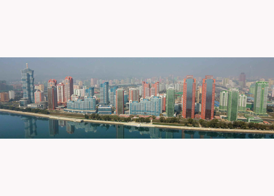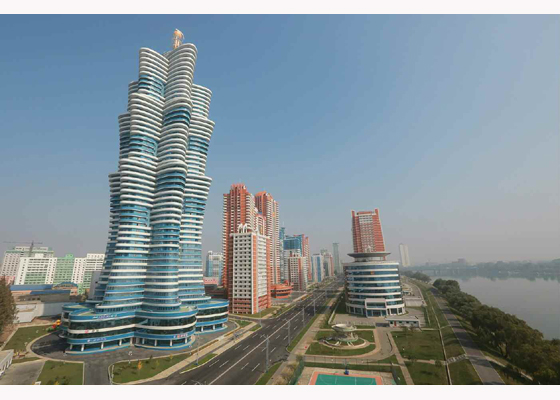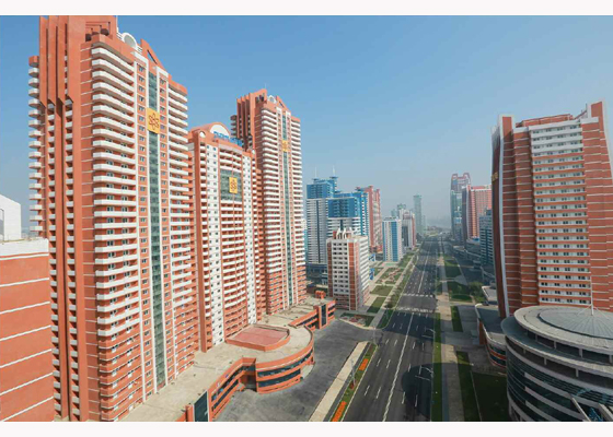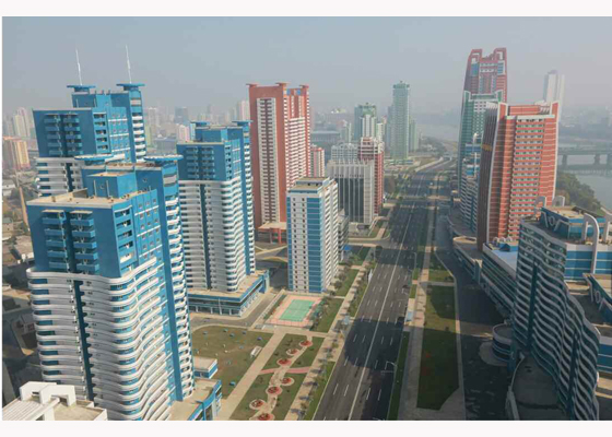 Durch den Bau dieses Wohnviertels wurde das Erscheinungsbild von der landschaftlich schönen Hauptstadt Pyongyang noch besser erneuert.