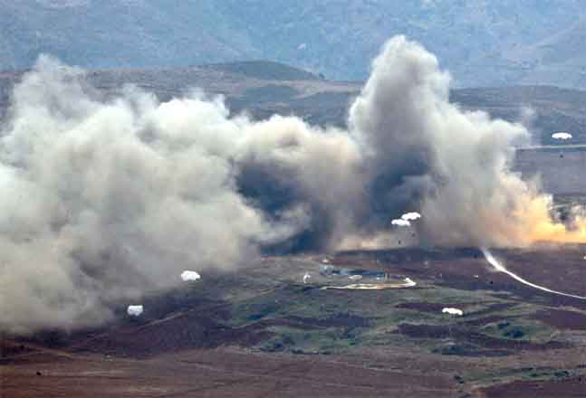 2: Ja genau. Für den Aufbau einer starken Armee war Kim Jong Il aufopferungsvoll tätig. Trotz Regen und Schnee bestieg er Tag und Nacht die kurvenreichen Berge Chol und Osong und besuchte Panmunjom, die Insel Cho und weitere Wachposten an der vordersten Front. In der Zeit, wo die koreanische Revolution den härtesten Bewährungsproben ausgesetzt war, bildete Kim Jong Il mit der Songun-Politik die Volksarmee zu einer mächtigen Elitekampfformation mit unbesiegbarem Kampfgeist heran und entwickelte die DVRK zu einer Militärmacht der Welt.