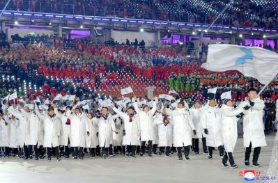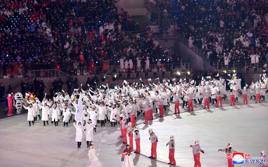 Als unter den Klängen der Melodie des Liedes „Arirang“ die Sportler aus dem Norden und dem Süden mit der Vereinigungsfahne Koreas an der Spitze eintraten, brachen die Jubelrufe und das Beifallklatschen aus.