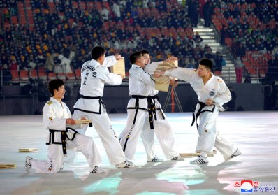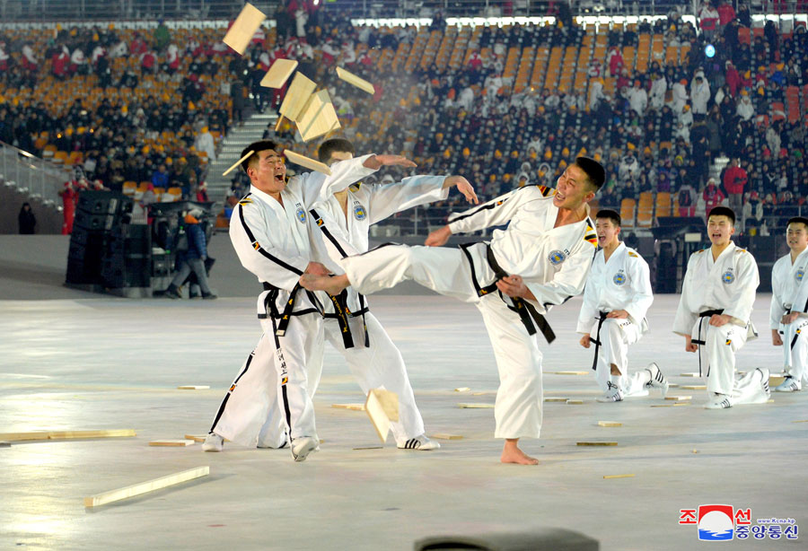 Vor der Eröffnungsfeier gab es den Show-Auftritt von innerkoreanischen Taekwondokas, die die Klugheit und den unerschütterlichen Geist der Nation, die Überlegenheit und Macht der orthodoxen Kriegskünste demonstrieren.