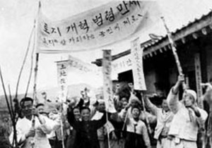 Am 15. August Juche 34 (1945) brachte das koreanische Volk die zig Jahre lang dauernde militärische Okkupation durch den japanischen Imperialismus zu Ende und erreichte endlich die Befreiung des Landes. Sie wurde nicht von Hilfe und Beistand der anderen, sondern aus eigener Kraft des koreanischen Volkes verwirklicht.