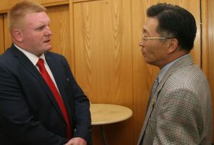 Auf Einladung seiner Exzellenz des Außerordentlichen und Bevollmächtigten Botschafters der DVR Korea in der BRD, Genossen Pak Nam Yong, weilte am 4. September 2018 eine Delegation der Antiimperialistischen Plattform Deutschland (AiP-D) unter Leitung ihres Vorsitzenden Genossen Michael Koth in der diplomatischen Vertretung. Unserer Delegation gehörten die Abteilungsleiter Personenschutz, Singebewegung, Arbeiterbewegung, Wissenschaft und Technik, Jugendfragen, Naher- und Mittlerer Osten und Angelsport an. Weiterhin begleitete uns der Vorsitzende der Korea-Studiengruppe Brandenburg (Ortsgruppe Eberswalde) Genosse Karl Diedrich sowie seine Stellvertreterin Genossin Agnes W.
