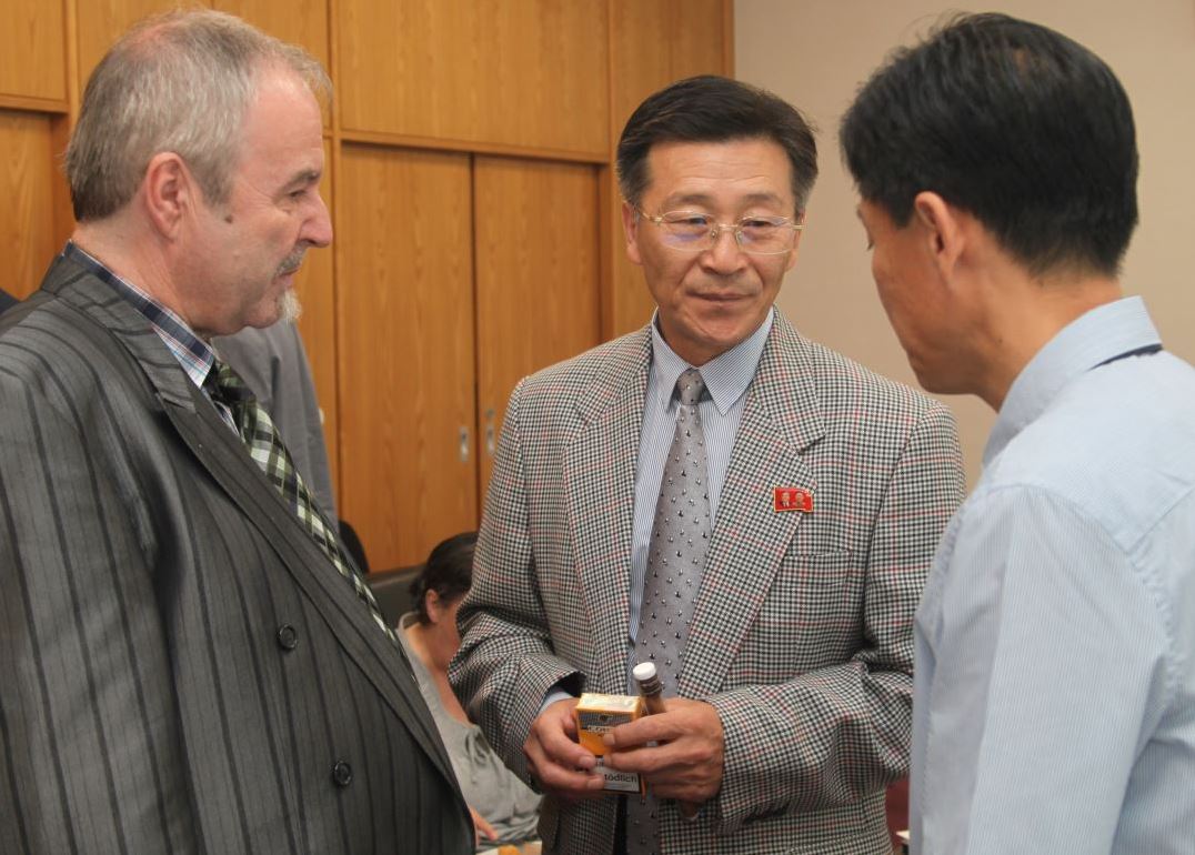 Dann ergriff Genosse Karl Diedrich das Wort und bedankte sich im Namen seiner neugegründeten Freundschaftsgruppe herzlich für die Einladung. Er schilderte aus eigenem Erleben fast 60 Jahre deutsch-koreanische Freundschaft. Er überreichte – wie Andere auch – mehrere Freundschaftgeschenke und betonte in eigener Sache, die unsere Sache ist: Er wird sich niemals mehr von den Sektierern und Dogmatikern in der sog. Linken vom progressiven Kampf zur Unterstützung des so erfolgreichen sozialistischen Koreas abhalten lassen!
