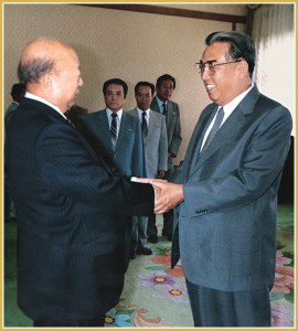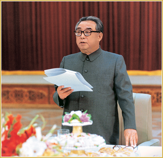 Genosse KIM IL SUNG damals, als sein Land in der schwierigsten Lage war, als Erster seinem Land mit vollen Händen politische und materielle Hilfe gegeben hätte und er unser vertraulichster Bruder und Freund sowie ein Vorbild für den Internationalisten sei.