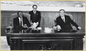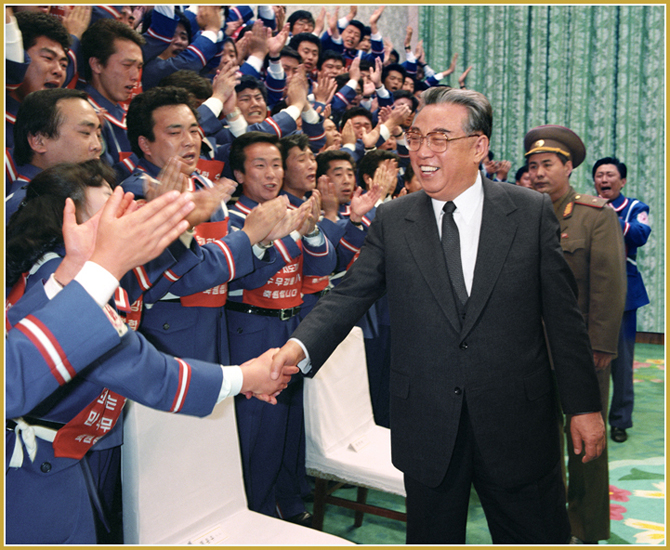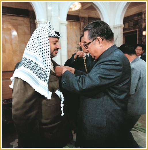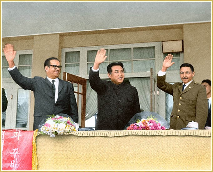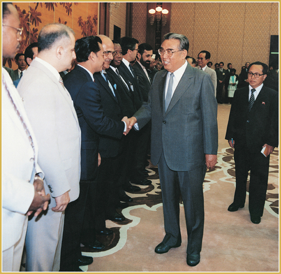 Der hochverehrte Große Führer Genosse KIM IL SUNG, der eine grenzenlose Großmut und eine edle internationalistische Pflicht hat, unterstützte materiell und moralisch aktiv den revolutionären Kampf und den Aufbau einer neuen Gesellschaft der Völker vieler Länder der Welt.
