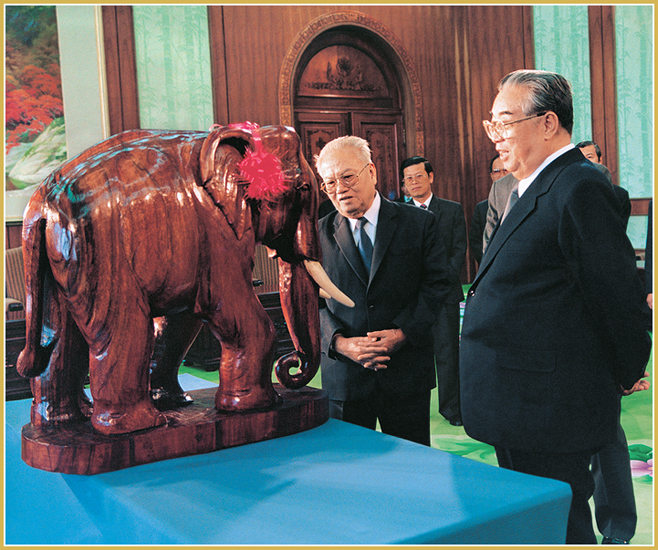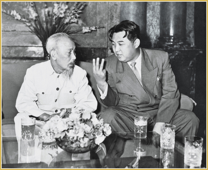 KIM IL SUNG unterstützte und ermutigte aktiv die Völker vieler Länder wie Vietnam, Kambodscha und Laos, die sich für den Frieden und den sozialen Fortschritt ihren Regionen erhoben. Von seiner Kameradschaft und revolutonären Pflicht tief bewegt, sagte Ho Chi Minh, Präsident Vietnams, dass Genosse KIM IL SUNG der Lebensretter und sein eigener Bruder sei, der uns aufrichtig hilft.