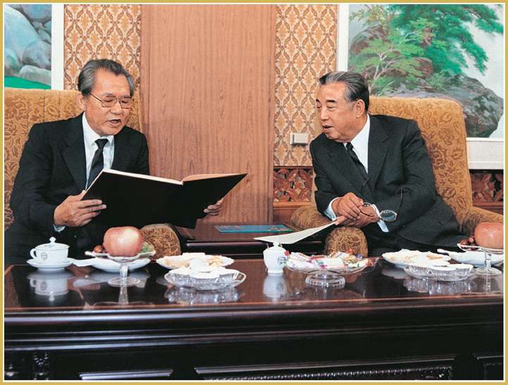 KIM IL SUNG beim Treffen mit Luise Rinser, Schriftstellerin der BRD