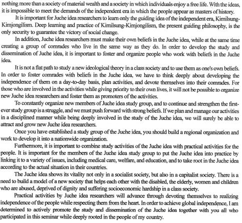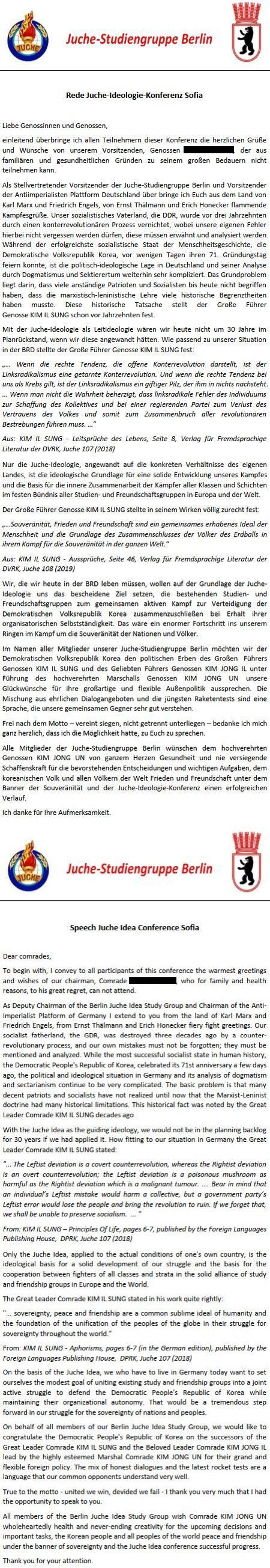 Rede des Vorsitzenden der Juche-Studiengruppe Dresden: