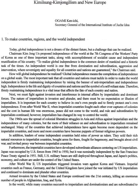 Rede des Generalsekretärs des Internationalen Instituts der Juche-Ideologie OGAMI Ken-ichi: