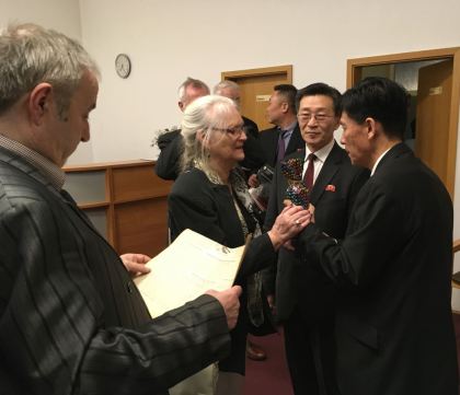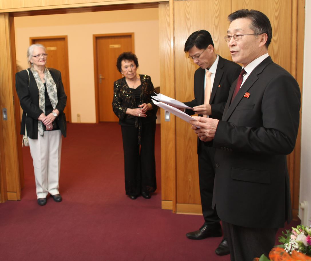 - Das Gespräch des Leiters der Frauenkommission, Genossin Agnes Grüning, mit S. E. dem Genossen Botschafter, das wahrlich auf Augenhöhe geführt wurde, ist der aktive Beweis, dass unsere koreanischen Freunde für alle Fragen ein offenes Ohr haben.