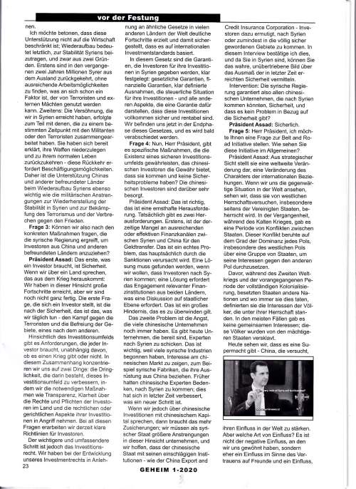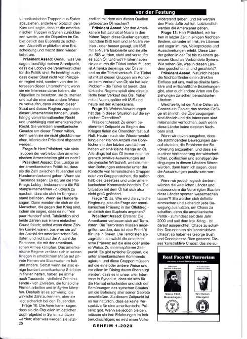 In dem Magazin GEHEIM erschienen in Ausgabe 1/2020 ein sehr interessantes Exklusivinterview mit Baschar al-Assad, das wir mit freundlicher Genehmigung des Verlags hier veröffentlichen.