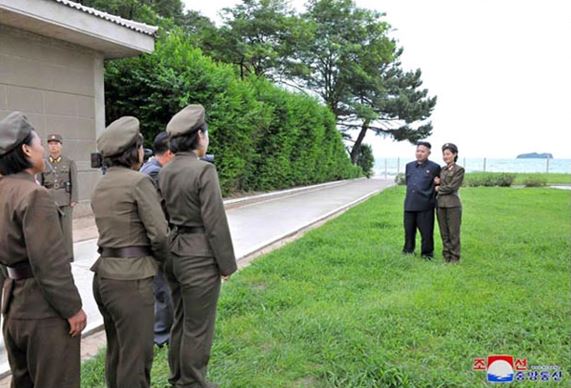 Im August Juche 101 (2012) besuchte er eine Küstenartilleriekompanie der Frauen, die Kakibaumkompanie genannt wird.