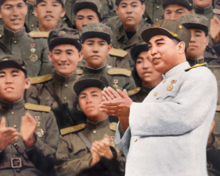 KIM IL SUNG lässt sich mit Kriegshelden zum Andenken fotografieren