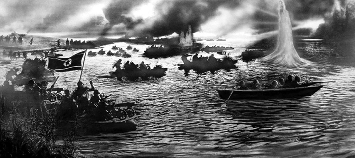 Die Angehörigen der Volksarmee überqueren den Fluss Raktong.