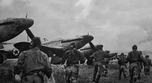 Flugzeugjägergruppen schießen gegnerische Flugzeuge ab.