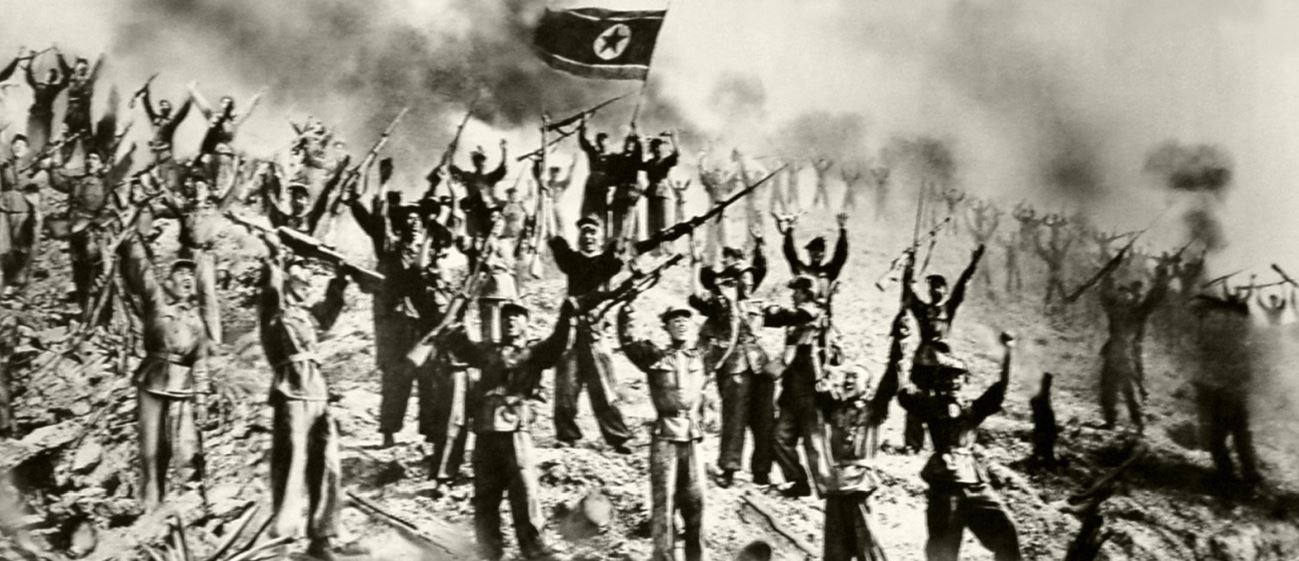 Kämpfer der Volksarmee bejubeln den Sieg im Krieg.