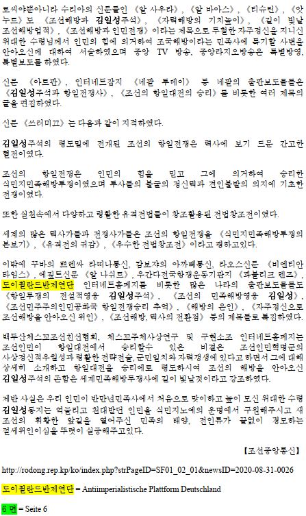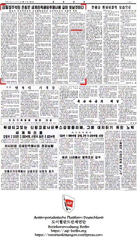 Die Parteizeitung Rodong Sinmun verfasste folgenden Artikel, in dem auch die Antiimperialistische Plattform Deutschland (AiP-D) Erwähnung findet: