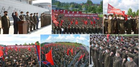 Nachdem die Parteimitglieder der Hauptstadt im Sonnenpalast Kumsusan, der heiligen Stätte von Juche, einen Eid zur Treue ablegten, starteten sie in gehobener Stimmung zur Front für die Verteidigung des Volkes.