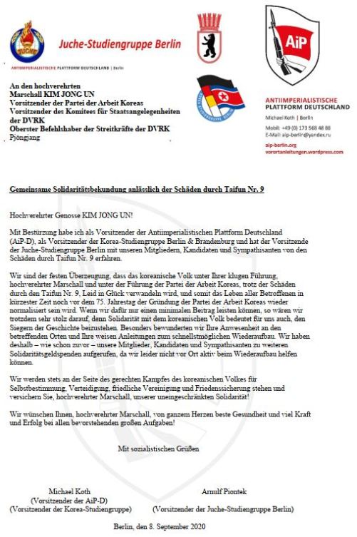 Grußbotschaft & Solidaritätsbekundungen im September 2020