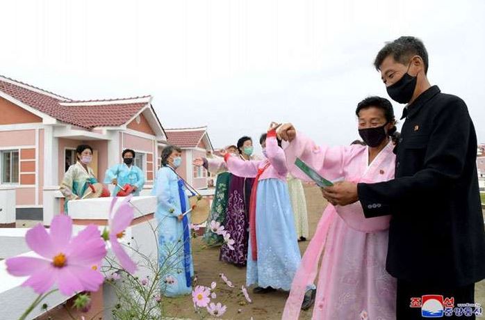 Vor dem 75. Gründungstag der PdAK gab es einen Umzug in neue Wohnungen in den Gemeinden Jaegyong, Sanyang, Ryongbok und Chondong, Pyongyanger Stadtbezirk Sunan.