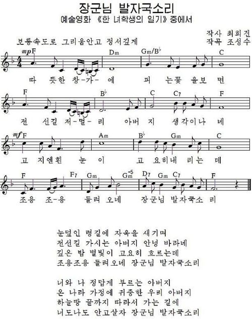 Das Lied des großen Generals (KIM JONG IL, d. Red.), der in einer Zeit schwerer Prüfungen (die zeit des Schweren Marsches, d. Red.) an der langen und rauen Frontlinie ging, war ein Lied der Erinnerungen in jedem Herzen mit Tränen.