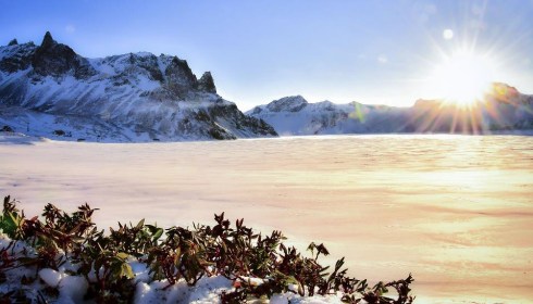 Jahrtausende vulkanischer Aktivität zeichnen auf eindrucksvolle Art das Antlitz des Paektu-Gebirges, eines von sechs berühmten Gebirgen Koreas. Die Winterlandschaft rund um den Kratersee Chon, ehrführchtig umrahmt von den Berggipfeln, war und ist mythische Inspirationsquelle für das koreanische Volk – die Kinder Paektusans.