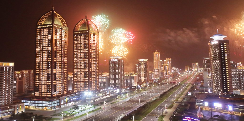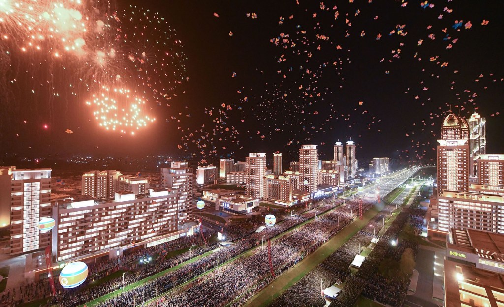 Mit großem Feuerwerk fand am 16. April die feierliche Einweihung von 50.000 (!) neuen, hochmodernen Wohnungen in der Pjöngjanger Songhwa-Straße statt.
