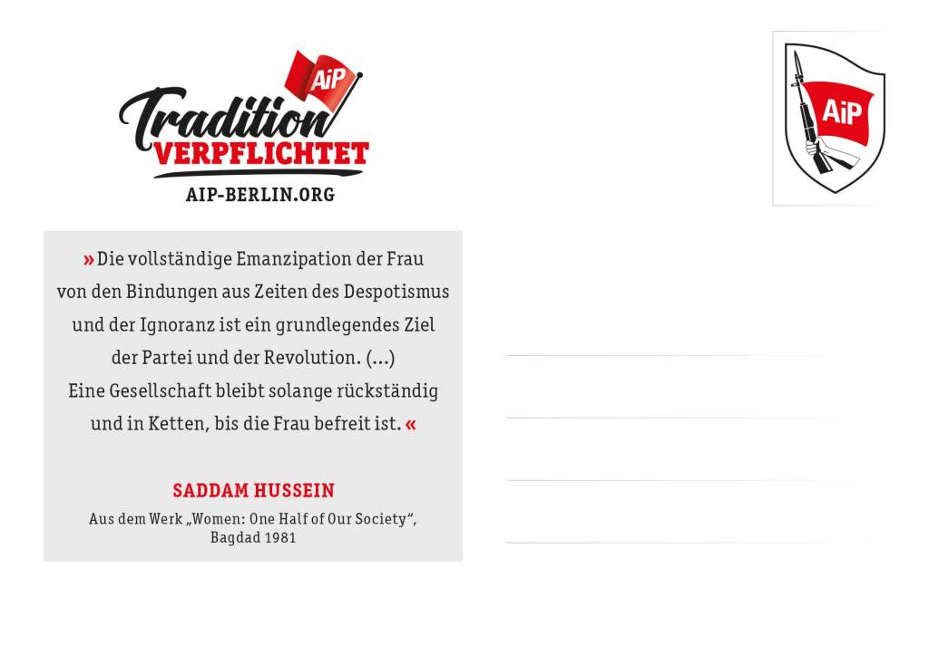Die Karte mit einem großen Sozialisten ist sicher der I-Punkt in Ihrer Sammlung. Der Genosse Micha hat eine gute Auswahl getroffen. Sie erinnern sich ganz sicher an das gemeinsame Schicksal des Genossen Ceaucescu, seine Frau, an die Familie Gaddafi, Soleimani, Gandhi und viele Andere, die unter extremer Lügenpropaganda feige ermordet wurden. Ich rede von Völkermördern, Kinderfickern, Kriminellen, Dieben, also dem absoluten Abschaum, der hinter der Ermordung jener großen Männer steckt.