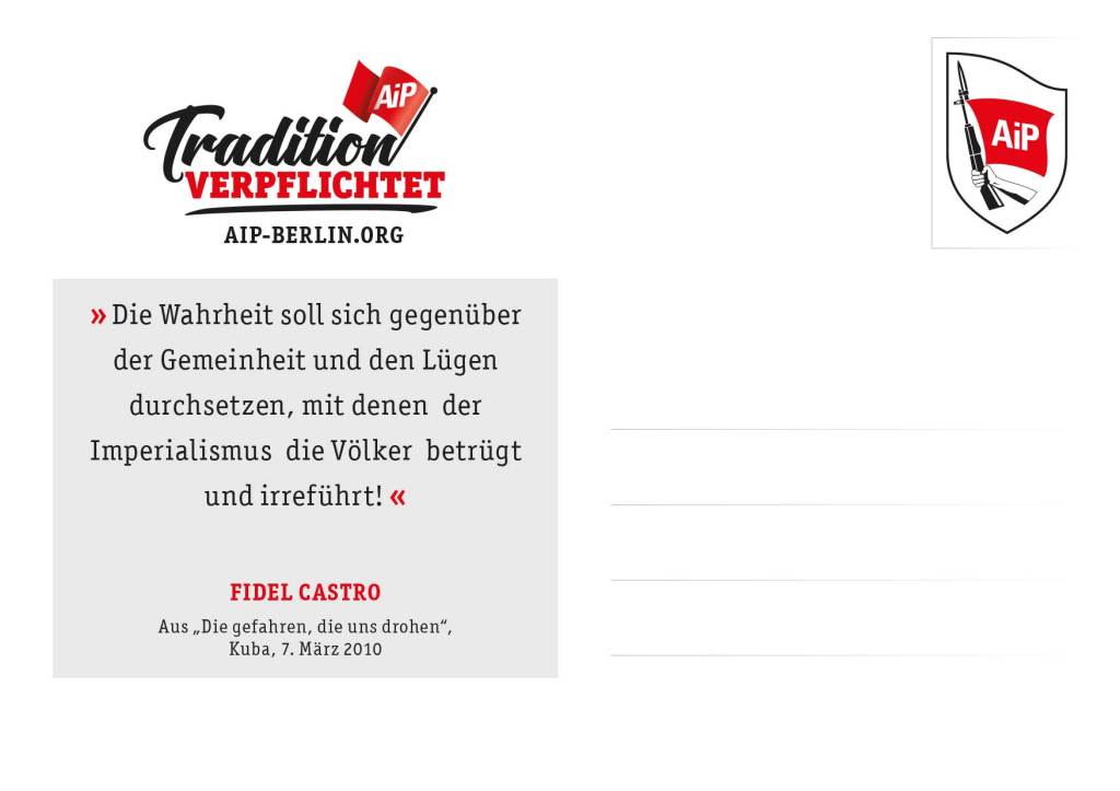 Unter diesem Motto veröffentlichen wir in regelmäßigen Abständen Postkarten mit Bildern und Zitaten großer Persönlichkeiten und herausragender Revolutionäre zum antiimperialistischen Befreiungskampf.