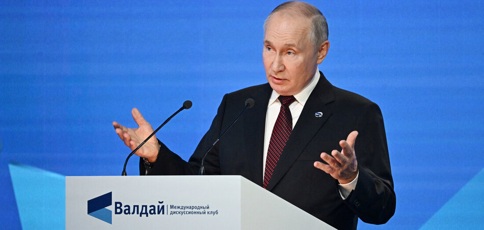 Am Donnerstag endete das 20. Waldai-Forum in Sotschi, auf dem rund 140 Sicherheitsexperten, Journalisten und Wissenschaftler unter dem Motto »Faire Multipolarität: Wie Sicherheit und Entwicklung für jeden sicherstellen« zusammengekommen waren. Während der mehrstündigen Fragerunde zum Abschluss hatte der Chefredakteur der jungen Welt, Stefan Huth, die Gelegenheit, den Präsidenten der Russischen Föderation, Wladimir Putin, zu den außenpolitischen Beziehungen Moskaus mit rechten Parteien in der EU zu befragen: