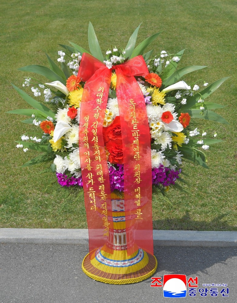 Zusätzlich wurde ein bunter Blumenkorb gespendet, der – zusammen mit zahlreichen weiteren Geschenken aus aller Welt – am 14. April zu Füßen des Großmonuments Mansudae in der Hauptstadt Pjöngjang präsentiert wurde.