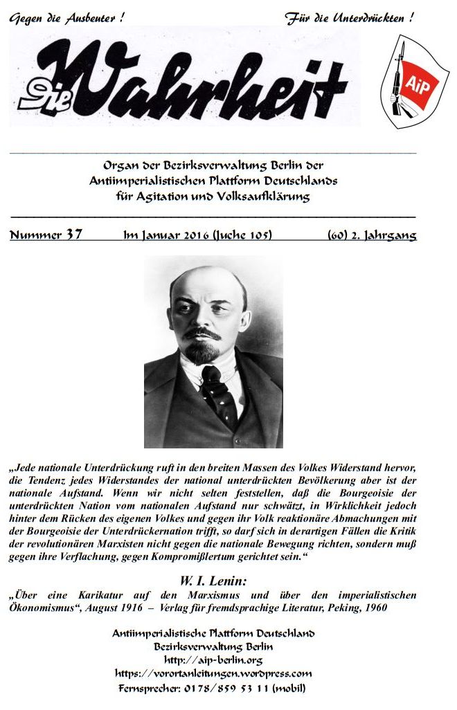 Hinterlasse einen Kommentar | Schlagwörter: 1960, AiP, AiP-D, AiP-D Bezirksverwaltung Berlin, August 1916, ber eine Karikatur auf den Marxismus und über den imperialistischen Ökonomismus, Bevölkerung, Bourgeoisie, Lenin, Marxisten, Massen, Peking, Reaktionär, Reaktionäre, Revolution, Unterdrückung, Verflachung, Verlag für fremdsprachige Literatur, Volk, W. I. Lenin, Wahrheit 37, Wahrheit Nr. 37, Widerstand, Willst du Klarheit, Willst du Klarheit – lies „Die Wahrheit“, Wladimir Iljitsch Lenin | Veröffentlicht inAgitprop, Europa, Geopolitik, Historische Dokumente, Imperialismus, Meldungen, Nachrichten, Willst du Klarheit – lies „Die Wahrheit“