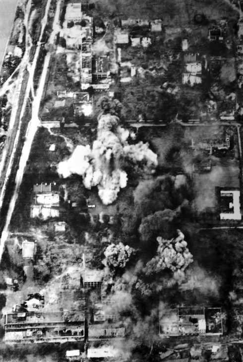 Bomber der US-Luftwaffe bombardieren den nördlichen Landesteil. Durch wahllose Bomben- und Artillerieangriffe der US-Truppen wurden allein im nördlichen Landesteil über 50 900 Betriebsgebäude, über 28 600 Schulgebäude, etwa 4500 Bauten der Gesundheitseinrichtungen wie Krankenhäuser und Kliniken und mehr als 2 077 200 Wohnhäuser in Schutt und Asche gelegt.