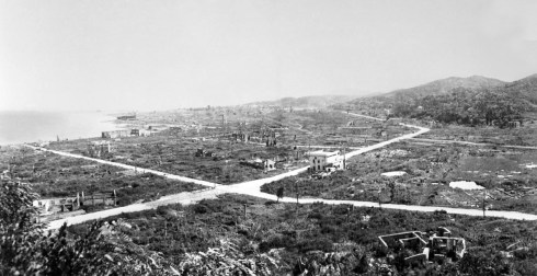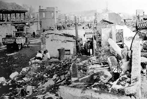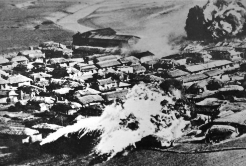 Durch Napalmbomben der US-Luftwaffe verbranntes Wohngebiet