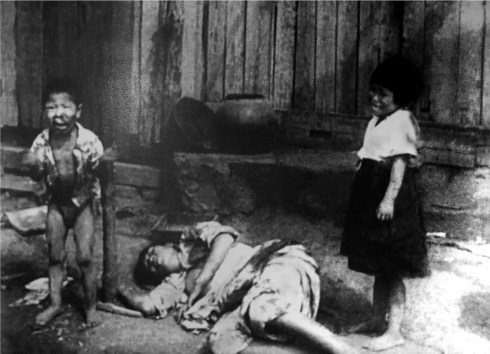 Kinder, die durch Bombardement ihre Mutter verloren.
