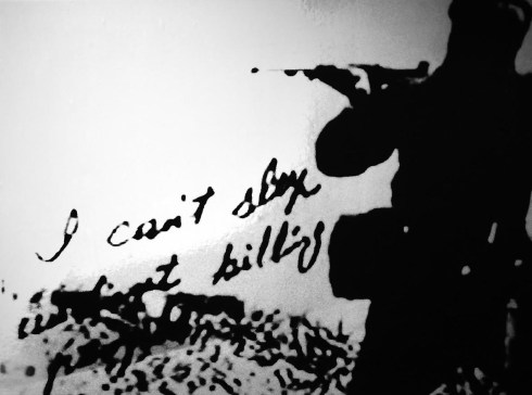 Foto und Schrift aus dem Taschenbuch eines GIs, der am Koreakrieg teilnahm. „Ich kann nicht einschlafen, wenn ich keinen Menschen getötet habe.“