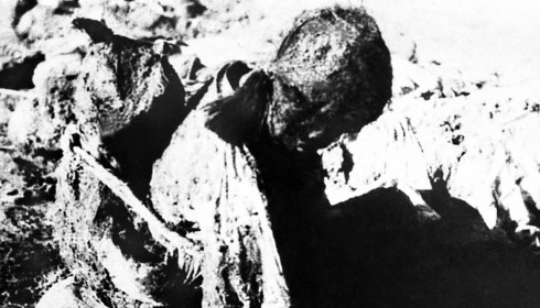 Leichen von in einem Schacht im Erzbergwerk Rakyon grausam ermordeten 800 Menschen