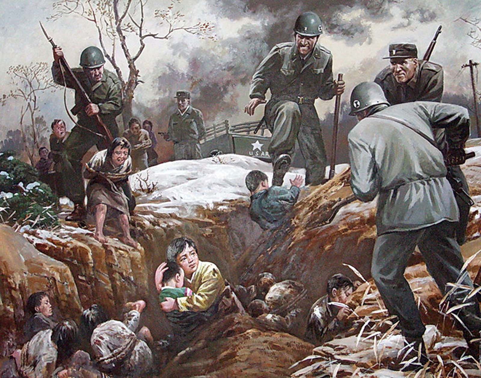 Schnell war klar, dass es sich seitens der US-amerikanischen Aggressoren um keinen zivilisierten Krieg handeln würde. In rasender Barbarei und mit blutrünstiger Brutalität stürzten sie sich auf das wehrhafte Volk Koreas, und ließen es die volle und unbarmherzige Härte ihrer Kriegsmaschinerie spüren. Überall dort, wo sie Fuß fassten, hinterließen die sich selbst „Befreier“ nennenden Marodeure Trauer, Leid und Zerstörung.