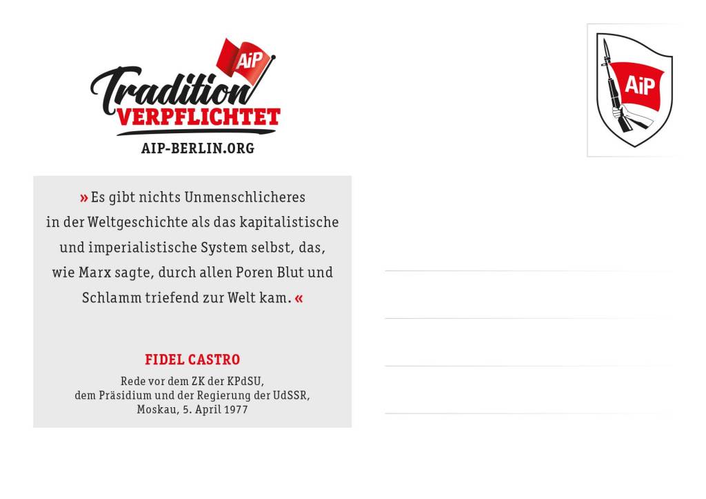 Unter diesem Motto veröffentlichen wir in regelmäßigen Abständen Postkarten mit Bildern und Zitaten großer Persönlichkeiten und herausragender Revolutionäre zum antiimperialistischen Befreiungskampf.