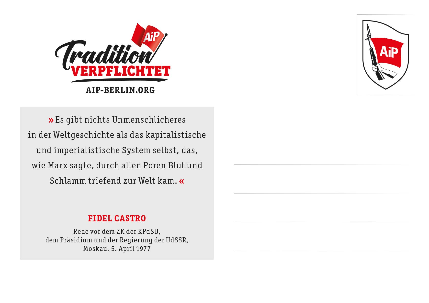 Unter diesem Motto veröffentlichen wir in regelmäßigen Abständen Postkarten mit Bildern und Zitaten großer Persönlichkeiten und herausragender Revolutionäre zum antiimperialistischen Befreiungskampf.