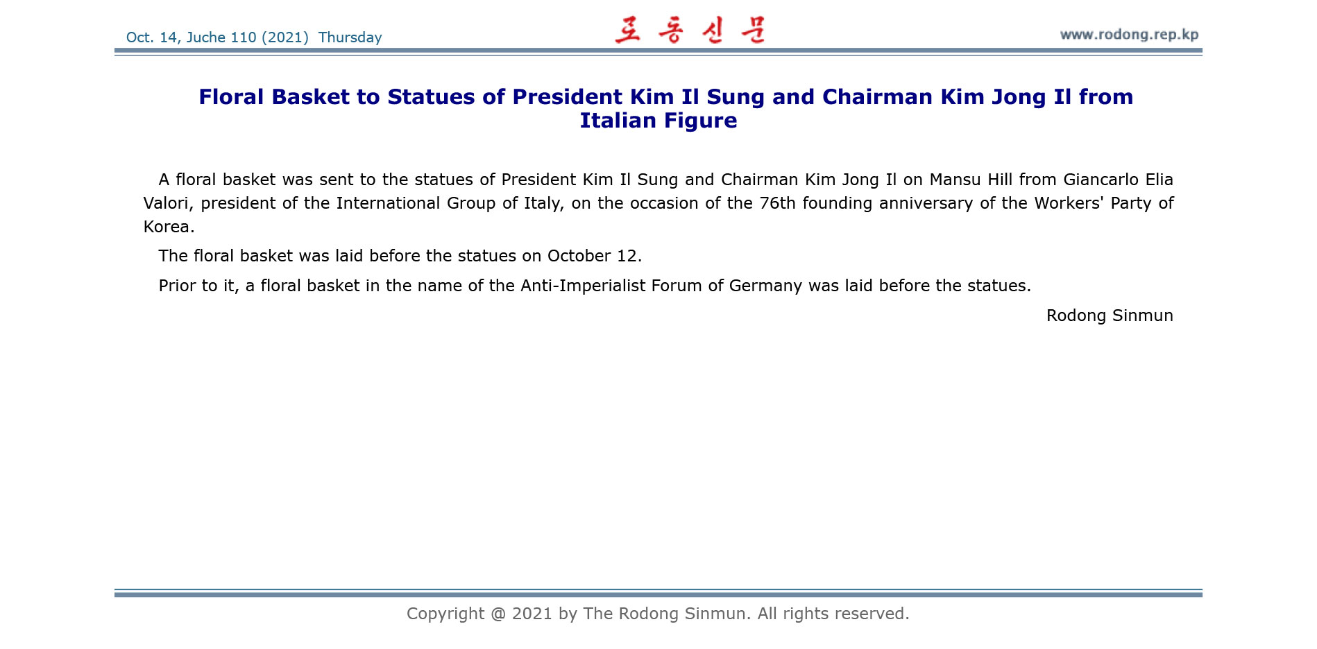 Unter anderem diese offenherzige und ehrliche Aussage des KVA-Oberst hat Christopher Black schwer beeindruckt. Zum Abschluss seines Artikels appellierte er an seine Leser, sie mögen Ihre Stimme für den Frieden erheben und seinen Artikel als Bestätigung für den unbedingten Friedenswillen des koreanischen Volkes sehen.