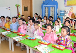 Mitte Juli Juche 101 (2012) suchte er den Kyongsanger Kindergarten auf. Beim Besuch dieses Kindergartens vor 2 Monaten versprach er ihnen, den Kindergarten unbedingt wieder aufzusuchen. So besichtigte er diesen Kindergarten. Im Gesamtspielraum im zweiten Geschoss trat er an die Kinder, welche Ärztin und Patientin spielten, näher heran, streckte ihnen seinen Arm aus und bat, ihn zu untersuchen. Und dann streichelte er zärtlich den sich an ihn schmiegenden Kindern die Wange. In der Unterstufengruppe 3 sah er den Kindern zu, welche mit Wachsfarbstiften malten, begutachtete lachend ihr zeichnerisches Talent und wies darauf hin, ihnen das Bildmalen gut beizubringen und von jung auf ihnen die Fähigkeit zur Betrachtung der Dinge und Erscheinungen anzuerziehen.