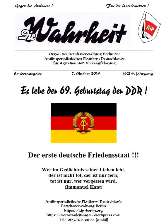 Niemand kann die Wahrheit aus der Welt schaffen: Die DDR ist in der langen deutschen Geschichte der einzige Staat, der nie einen Krieg geführt hat. Allein das rechtfertigt, sich ihrer mit größtem Respekt zu erinnern. Dazu haben wir uns hier und heute verabredet. Auch wenn Soldschreiber das verhindern wollten. weiterlesen