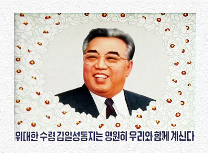 Der Präsident Kim Il Sung, sein Name bedeutet die Sonne. Er erhellte, genau so wie die Bedeutung seines Namens, mit der hellen Strahlung wie die Sonne den Weg für die Menschheit und umarmte mit heißer Wärme die Völker in seiner Geborgenheit.