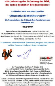 Niemand kann die Wahrheit aus der Welt schaffen: Die DDR ist in der langen deutschen Geschichte der einzige Staat, der nie einen Krieg geführt hat. Allein das rechtfertigt, sich ihrer mit größtem Respekt zu erinnern. Dazu haben wir uns hier und heute verabredet. Auch wenn Soldschreiber das verhindern wollten. weiterlesen