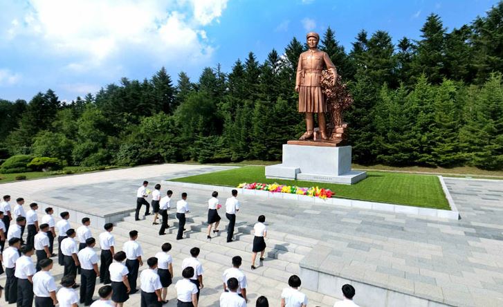 „Die Genossin Kim Jong Suk war leidenschaftliche Revolutionärin, die für die Wiedergeburt des Vaterlandes und den Sieg unserer Revolution ihr alles gewidmet und gekämpft hatte. Sie war berühmte Scharfschützin, geschickte illegale Mitarbeiterin und willensstarke Kommunistin, die vor den harten Schwierigkeiten und Bewährungsproben unbeugsam war. …