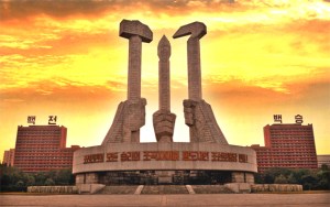 Der Führung der großen Partei folgend, vollendete das koreanische Volk auf den Trümmern, wo nur Aschen übrig geblieben waren, in kurzer Frist den Nachkriegswiederaufbau, führte daher die sozialistische Industrialisierung erfolgreich durch und errichtete durch den großen revolutionären Aufschwung beim sozialistischen Aufbau die Republik als sozialistischer Staat, der souverän, selbstständig und zum Selbstschutz fähig ist.